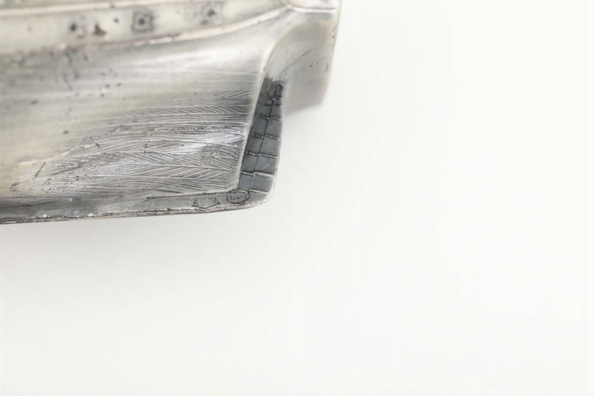Modello di veliero Bon Homme Ricard in argento fuso sbalzato, cesellato e traforato. su base in onice. Italia XX secolo