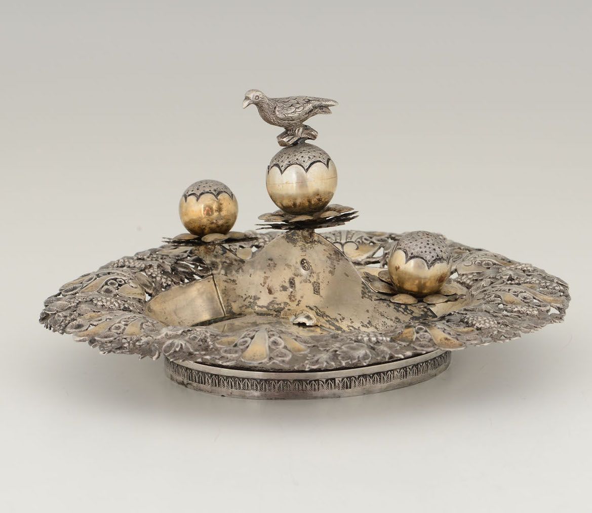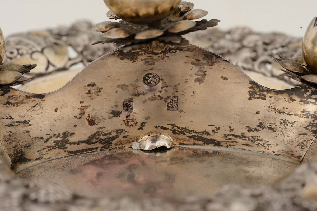 Piatto per cerimonia nunziale in argento fuso, sbalzato, cesellato e dorato. Impero austro ungarico, probabile area balcanica XIX secolo