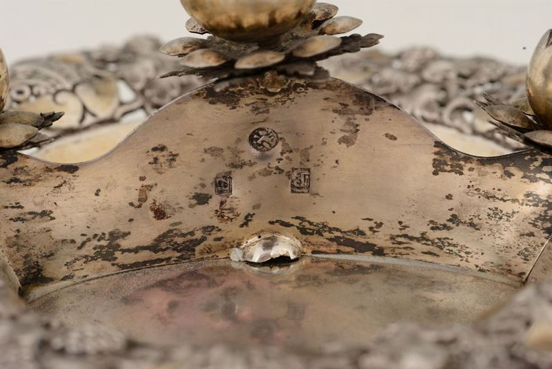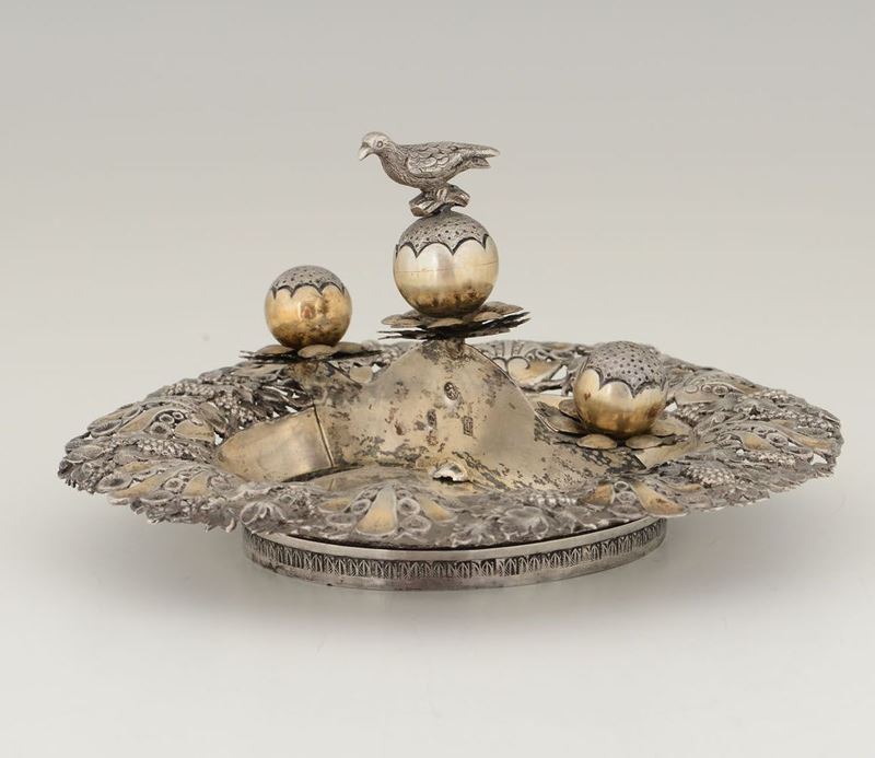Piatto per cerimonia nunziale in argento fuso, sbalzato, cesellato e dorato. Impero austro ungarico, probabile area balcanica [..]