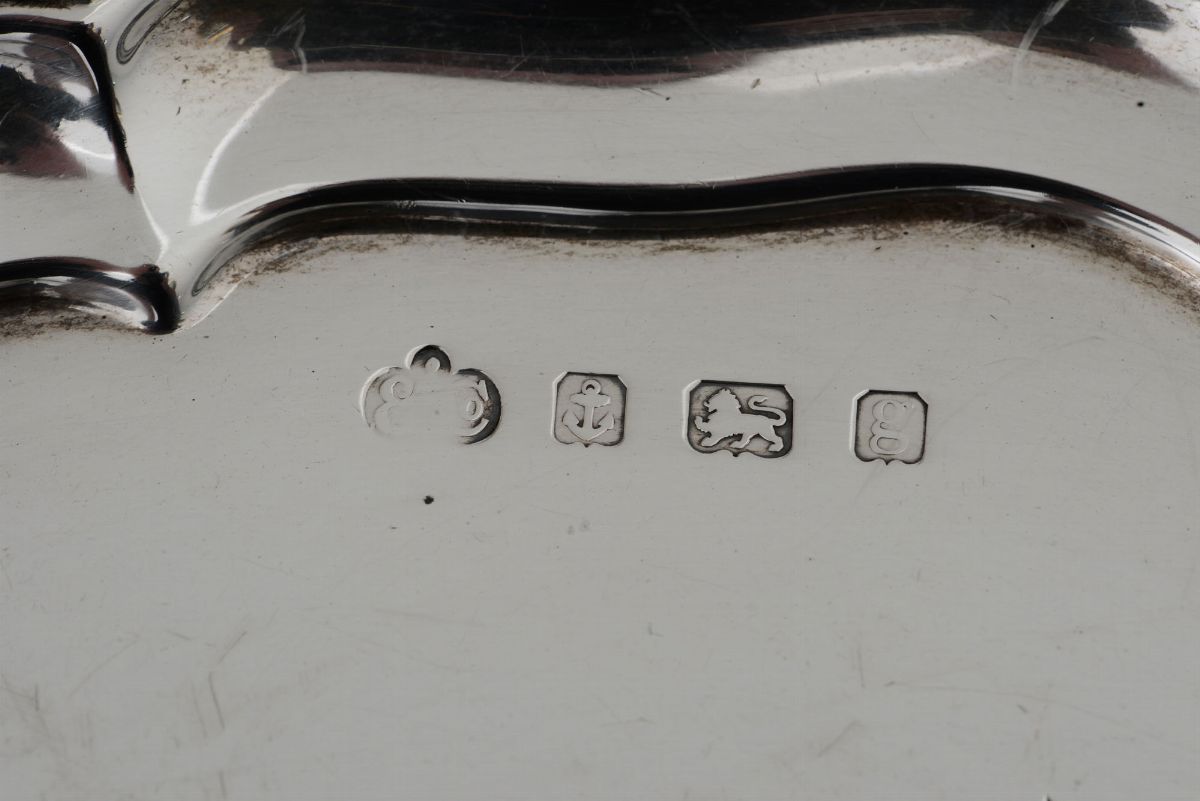 Salver in argento fuso e cesellato. Inghilterra Birmingham 1906, argentiere Elkington Co.