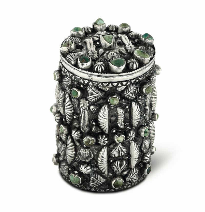 Scatola in argento con turchesi, manifattura orientale del XX secolo