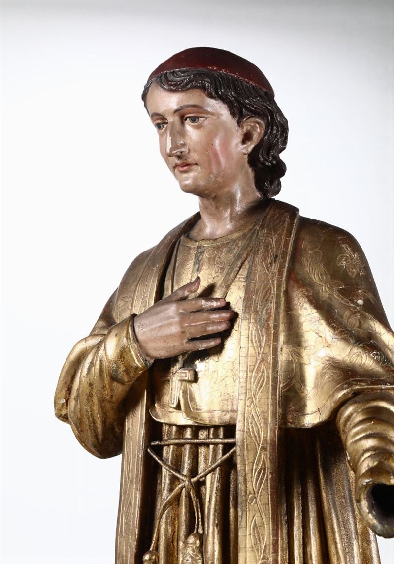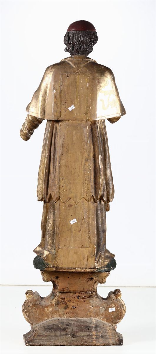 Santo in legno scolpito, dorato e dipinto. Scultore italiano del XIX-XX secolo