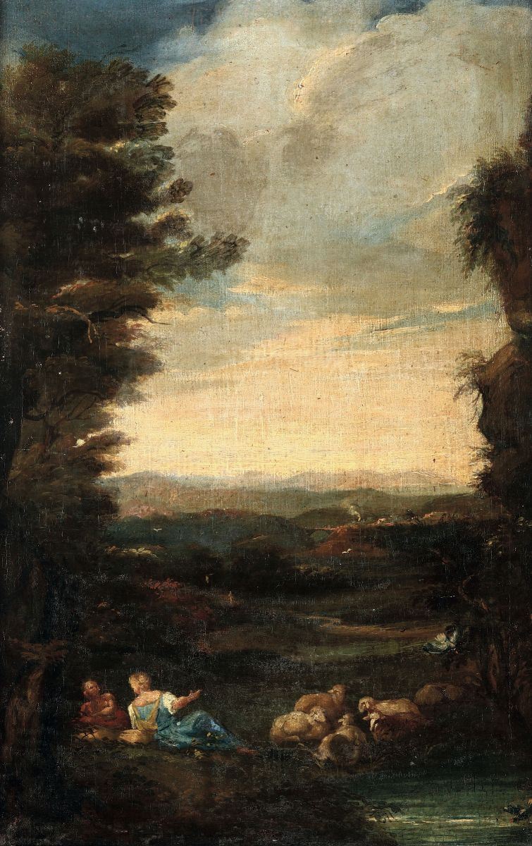 Scuola italiana del XVIII secolo Paesaggio con pastori e armenti