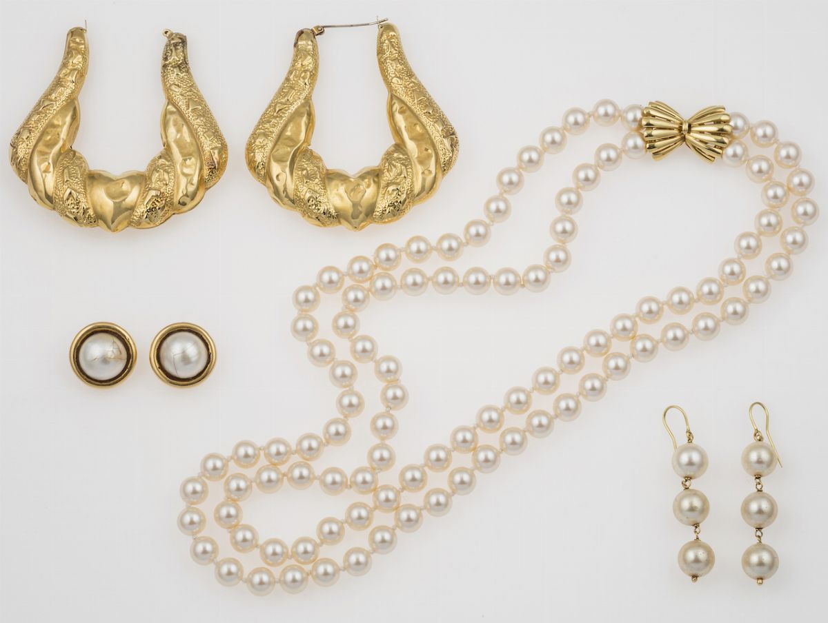 Lotto composto da un girocollo di perle e tre paia di orecchini