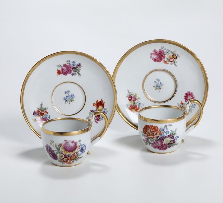 Coppia di tazzine con piattini Meissen, primi decenni del XIX secolo