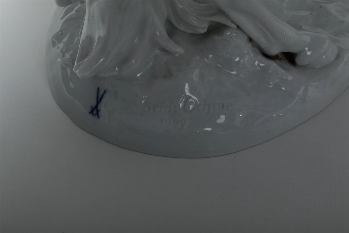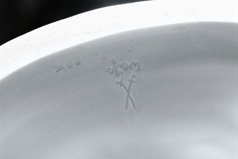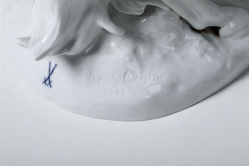 Porcellana bianca. Marca: spade, “Weiss” e numeri incisi; spade in blu; “Erich Oehme 1949” incisi. Altezza cm 49. Perfetto stato di conservazione