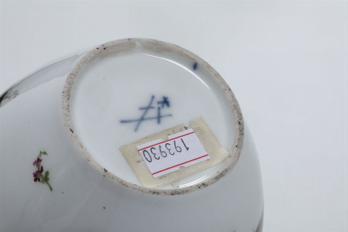 Porcellana. Marca: spade con asterisco in blu. Altezza cm 13. Coperchio non pertinente e con rotture