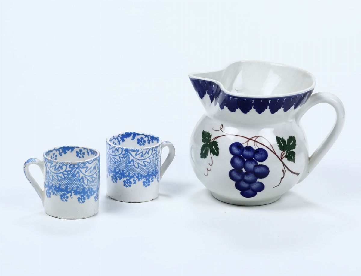 Una brocca e due tazzine Mondovì, Manifattura Vedova Besio e Figlio, inizio del XX secolo