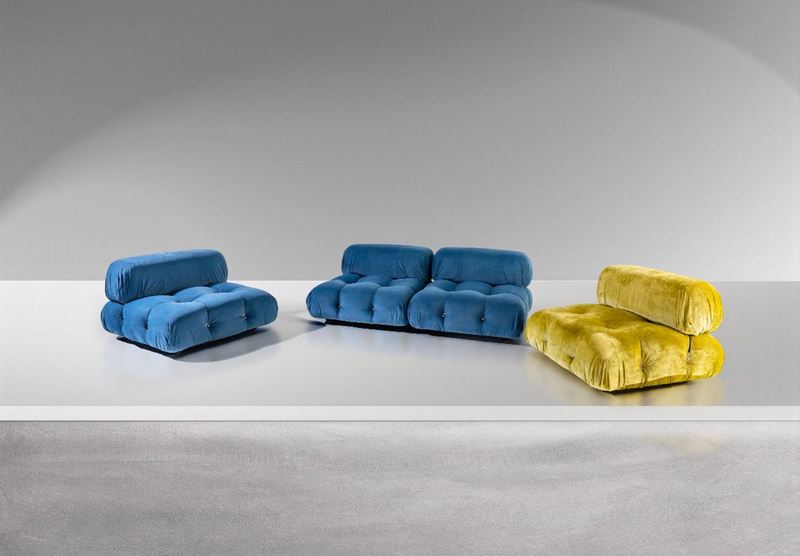 Divano modulare mod. Camaleonda, poliuretano espanso e rivestimenti in tessuto.