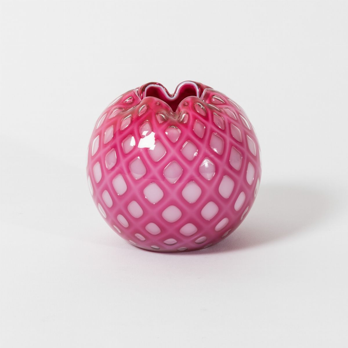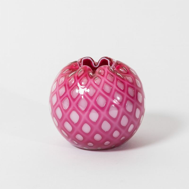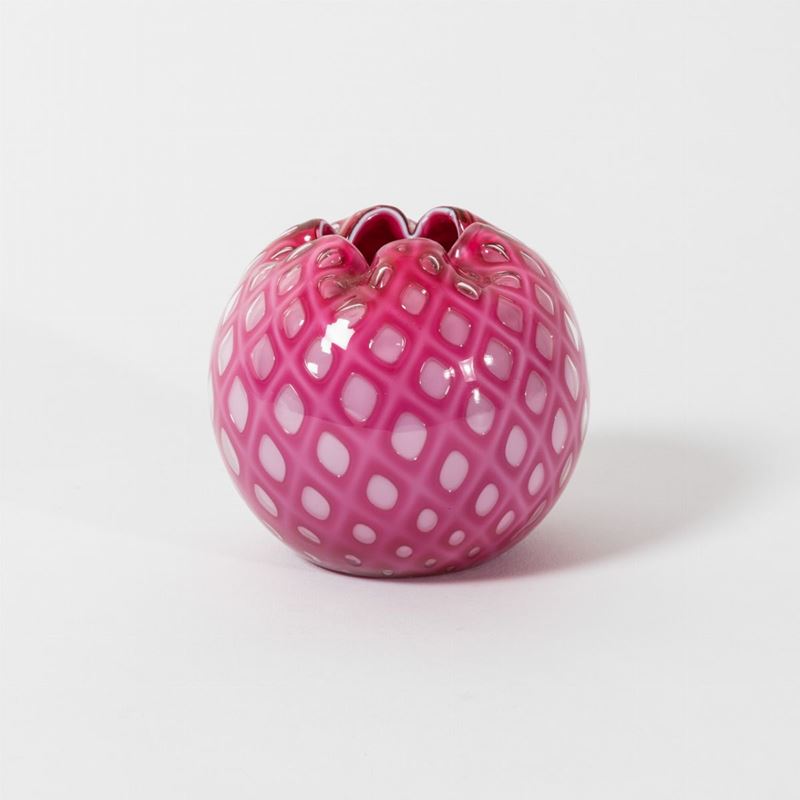 Piccolo vaso con decoro a losanghe in vetro incamiciato rosa