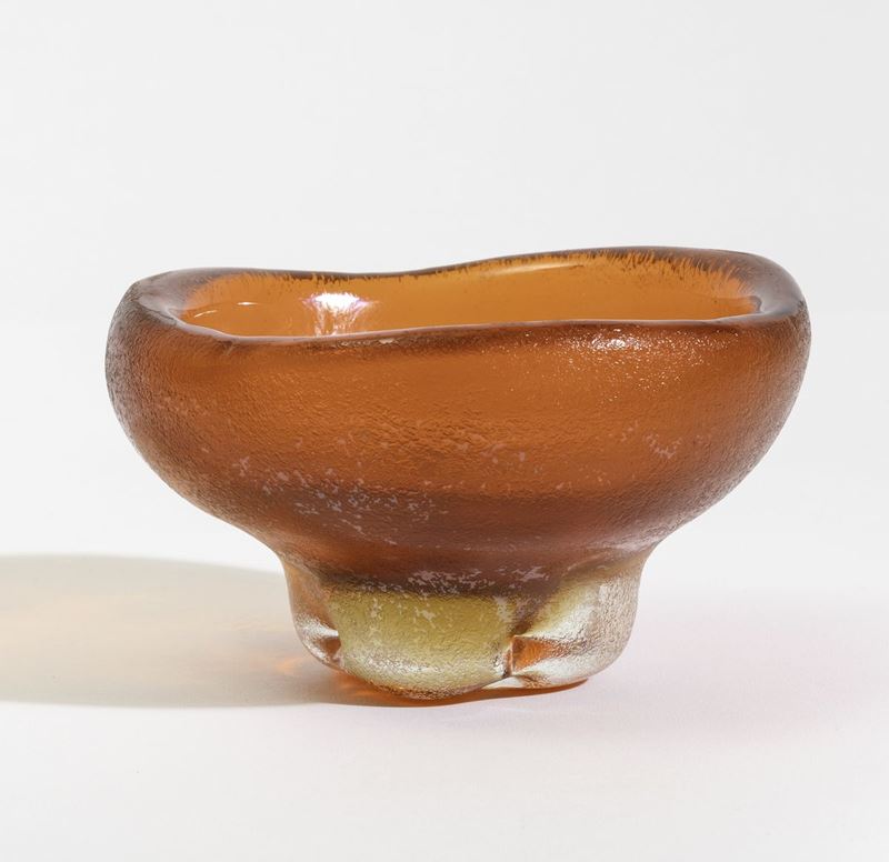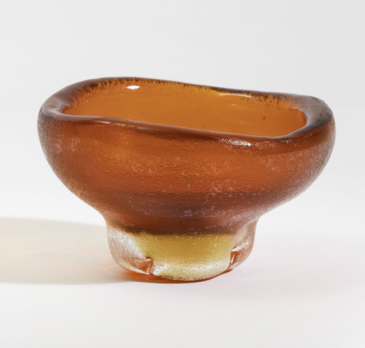 Piccola coppa serie Corrosi in vetro sommerso a due colori con superficie interamente lavorata all’acido altezza cm 7,5, diametro cm 13