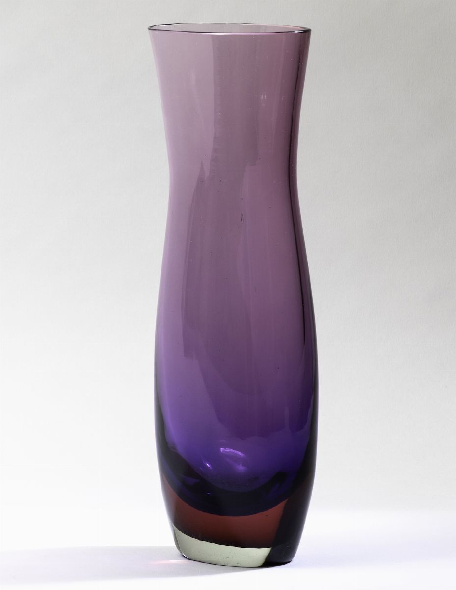 Vaso a sezione ovale in vetro sommerso blu e rubino