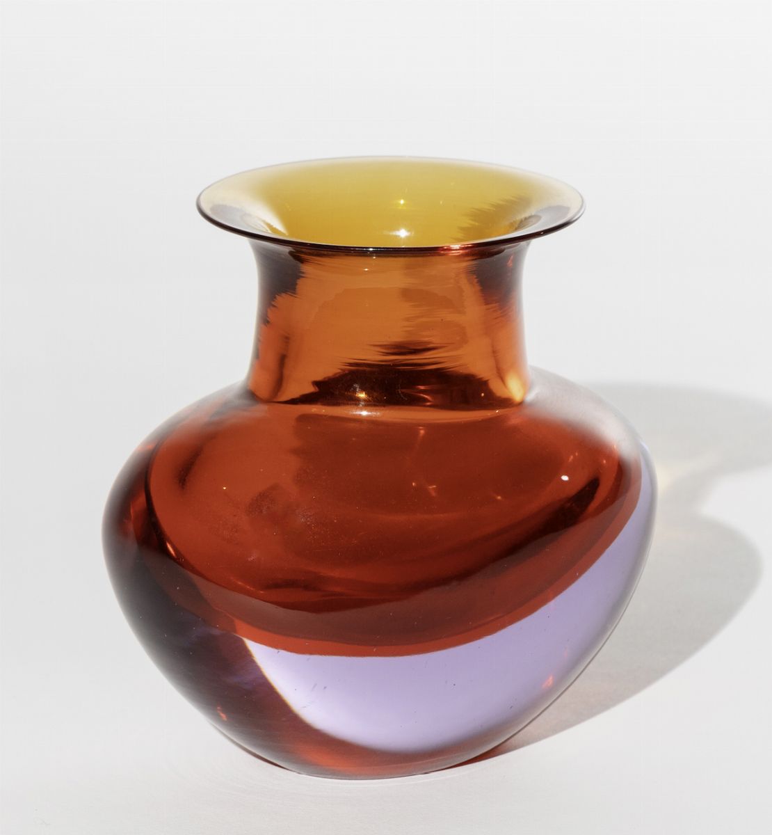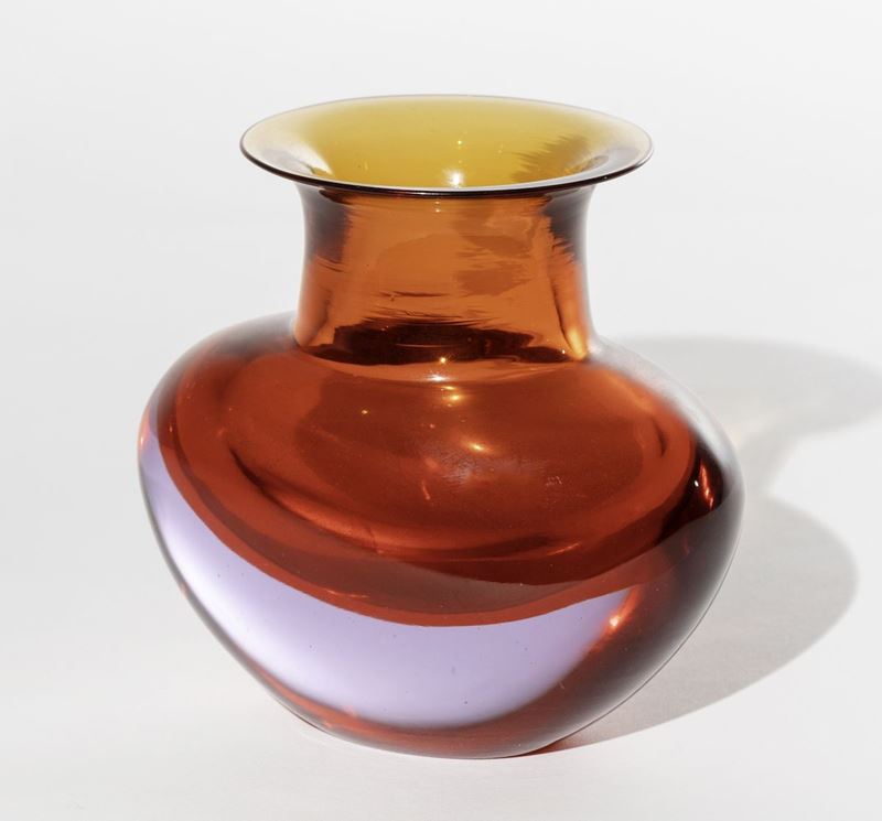 Vaso a fagiolo con ampio collo in vetro sommerso arancio e violetto