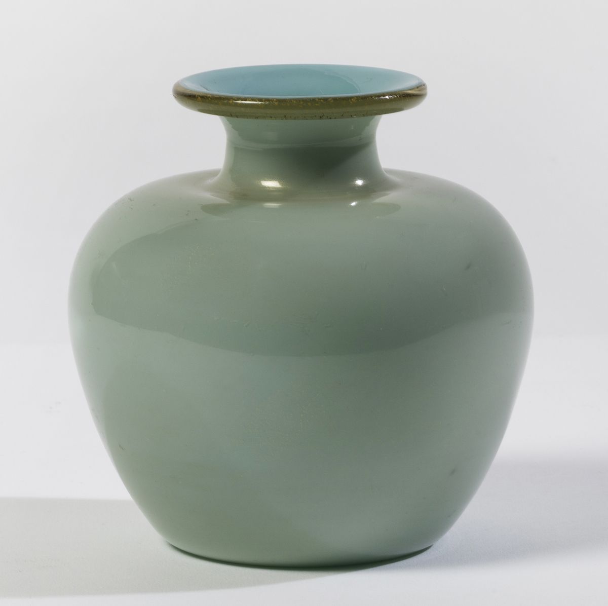 Piccolo vaso globulare in vetro soffiato Alga con decoro di foglia oro