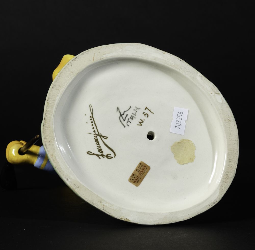 Figura di Paperino golfista in ceramica a colaggio policroma