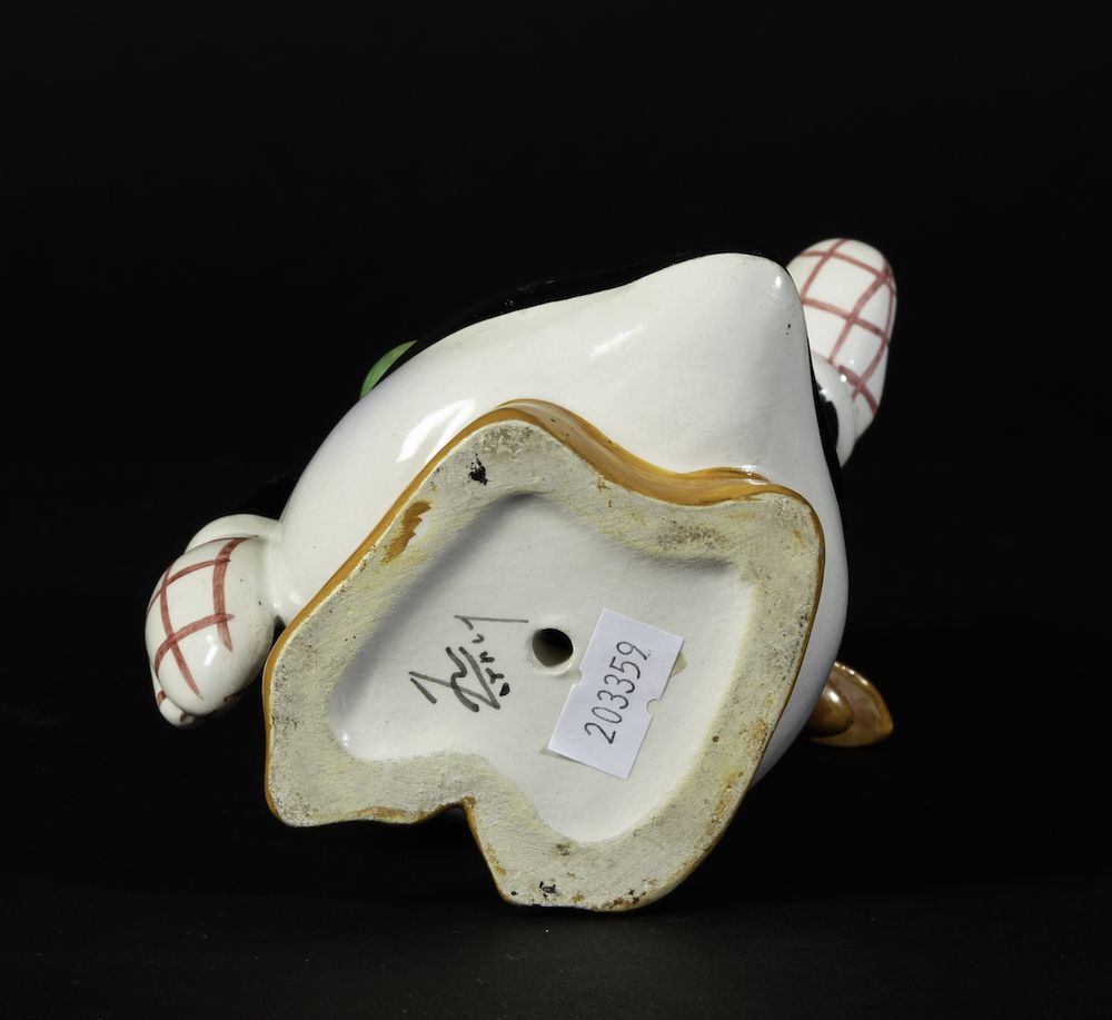 Figura di Pablo Pinguino in ceramica a colaggio policroma