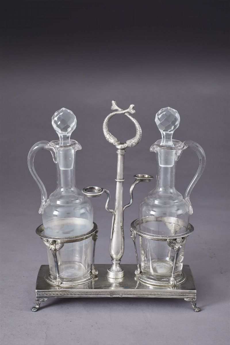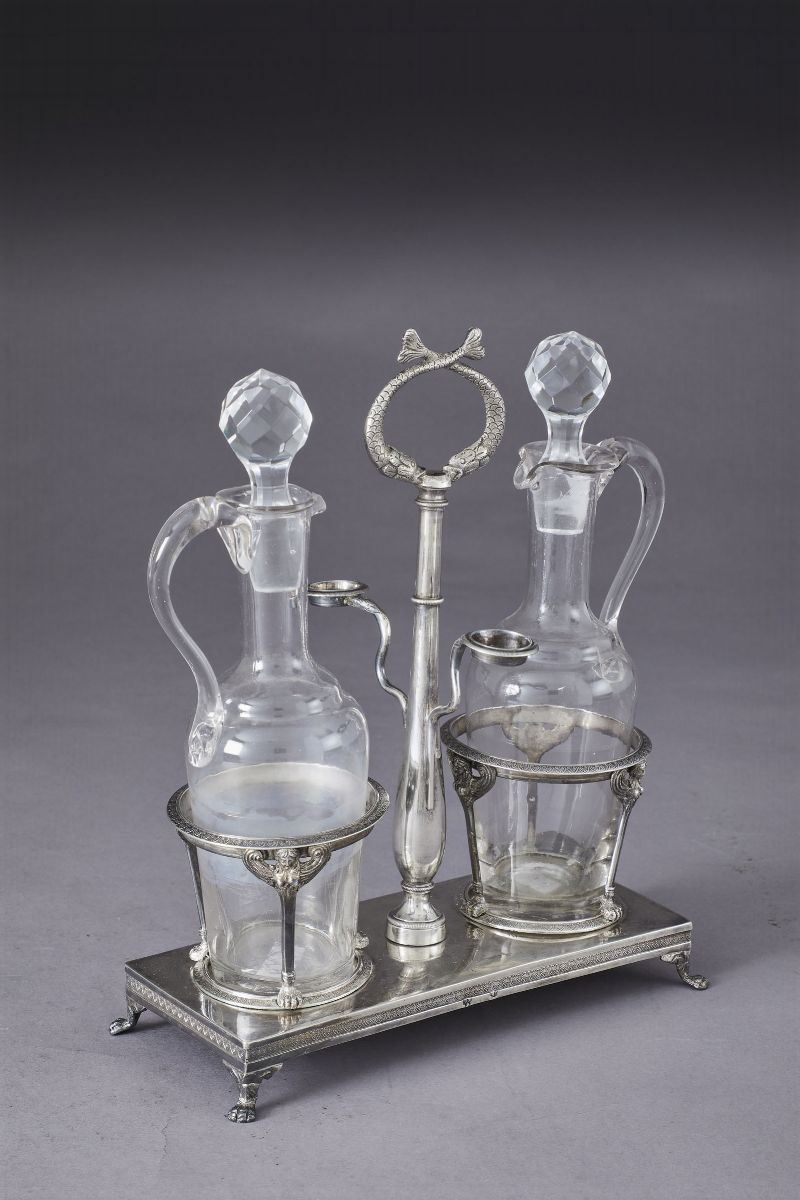 Acetoliera in argento e vetro molato. Napoli inizi del XIX secolo. Argentiere Geatano Pane