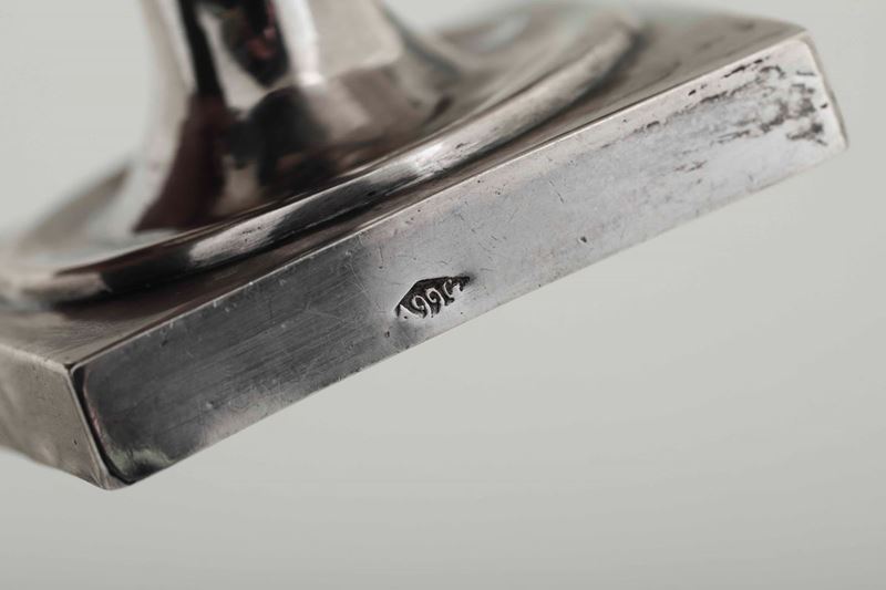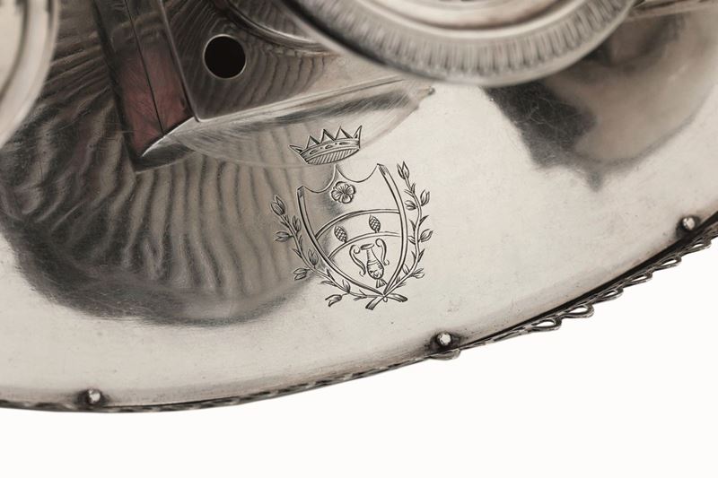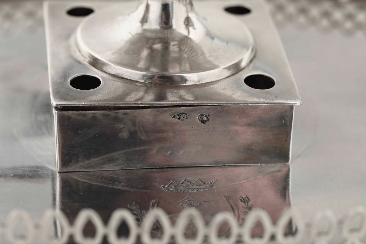 Calamaio in argento fuso, sbalzato, cesellato e traforato. Roma, XIX secolo, bollo camerale e marchio dell'argentiere Angelo [..]