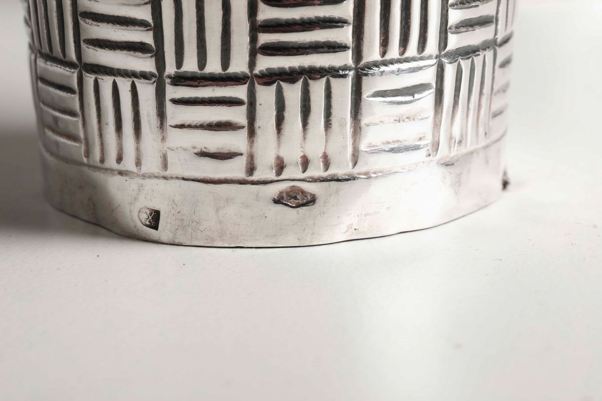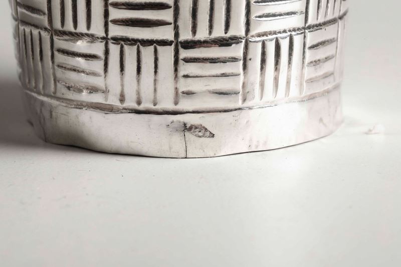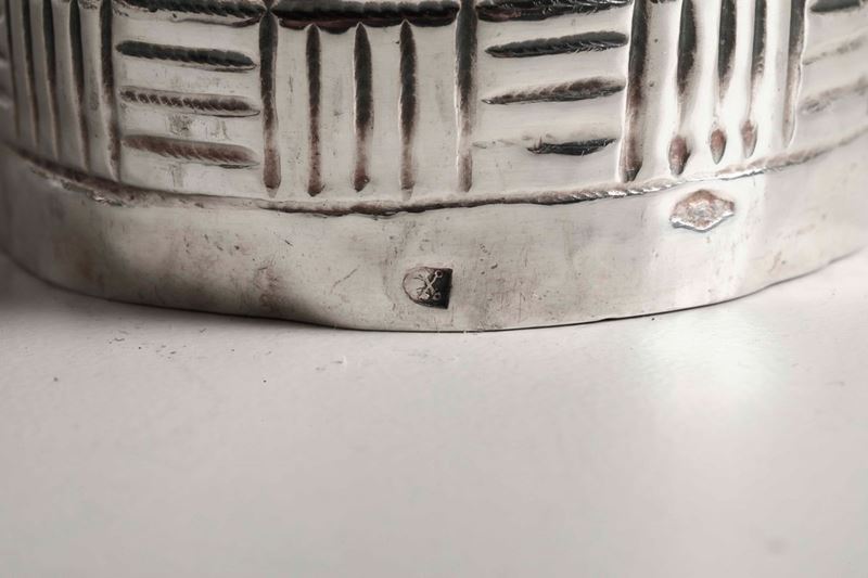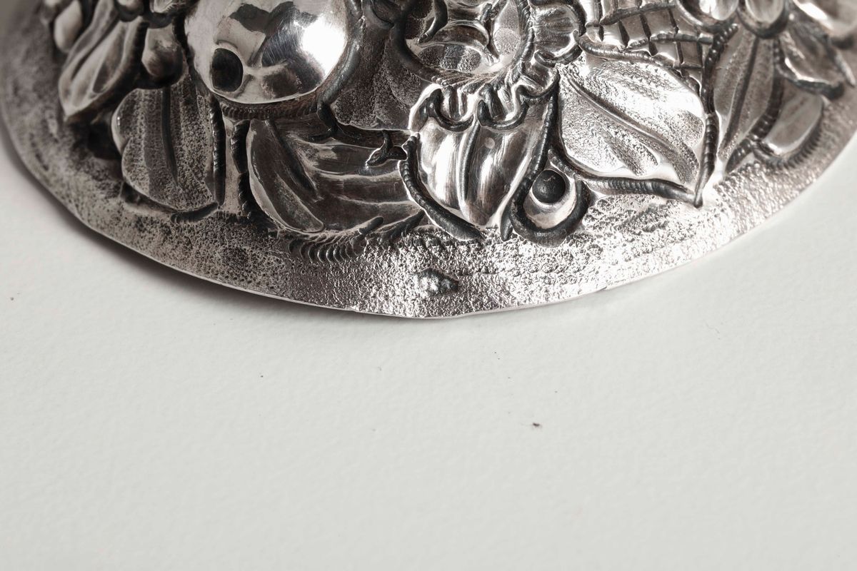 Calamaio in argento fuso, sbalzato e cesellato. Roma XIX secolo, marchi dell'argentiere consunti e di difficile lettura