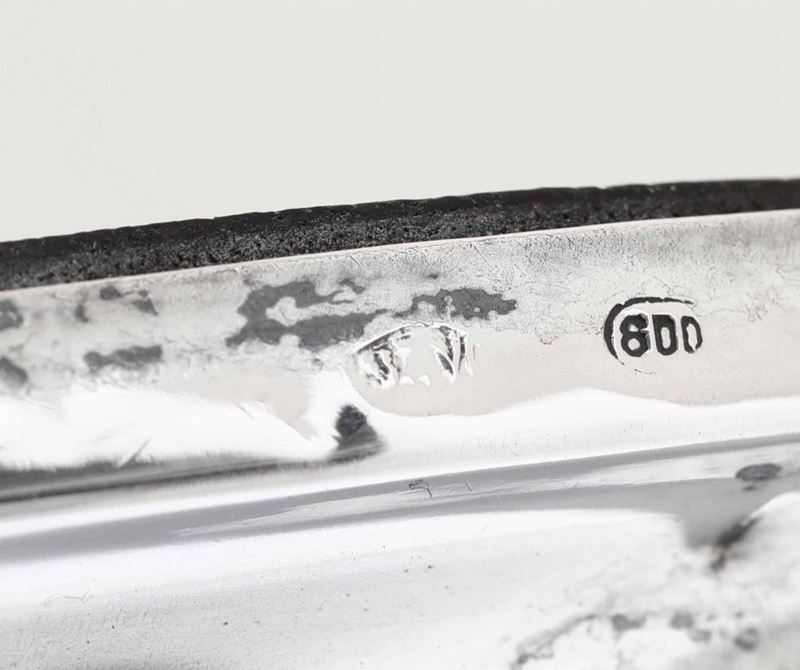 Centrotavola in argento e piano a specchio. Manifattura artistica italiana, terzo quarto del XX secolo