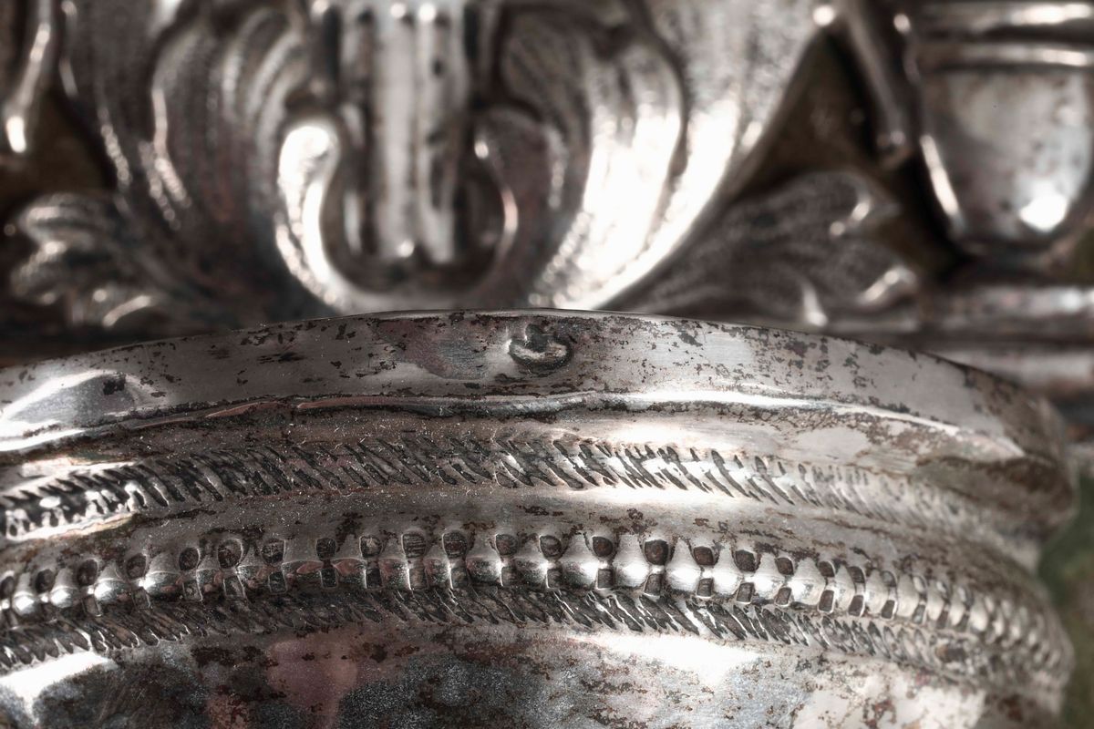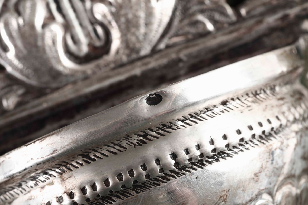 Coppia di acquasantiere in argento, probabile area Lombardo-Veneta, Italia XIX secolo