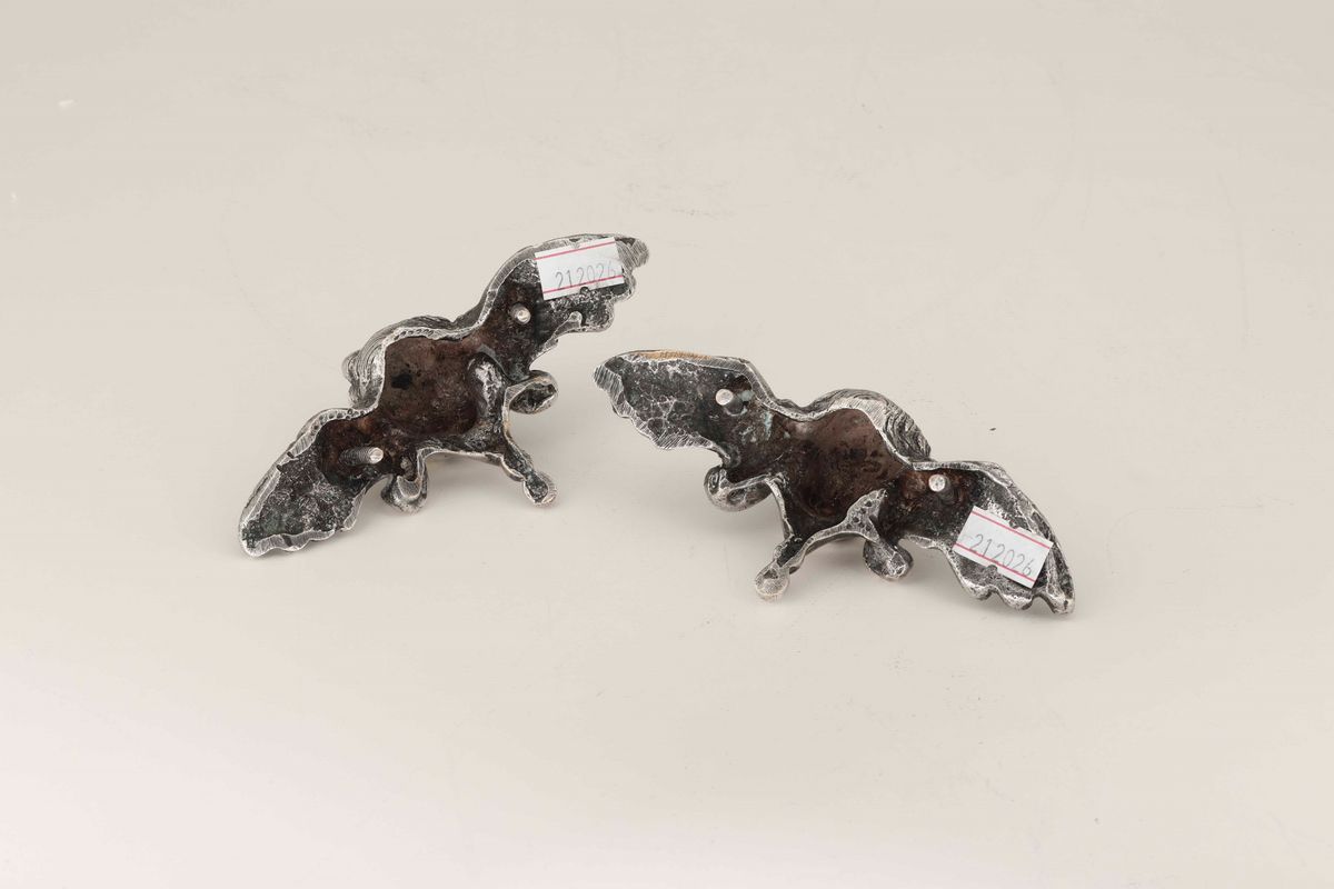 Due cherubini alati in argento fuso, manifattura italiana, XVIII-XIX secolo. Apparentemente privi di punzonatura.