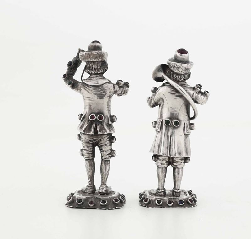 Due musici in argento e pietre dure. Manifattura artistica del XX secolo, probabilmente Austria o Germania