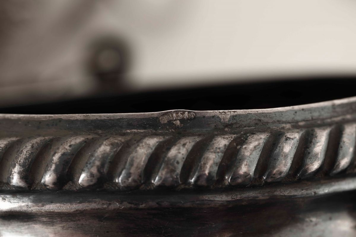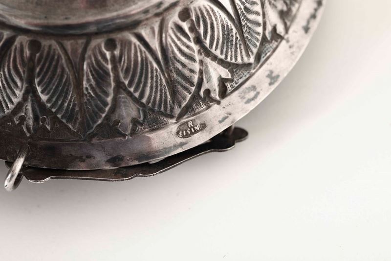 Lampada votiva in argento fuso, sbalzato e cesellato. Napoli, seconda metà del XIX secolo, bollo dell'argentiere Raffaele [..]