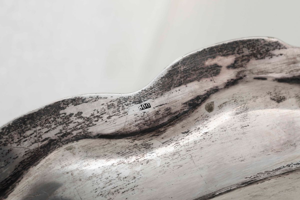 Piatto da portata in argento fuso e cesellato. Manifattura artistica del XX secolo