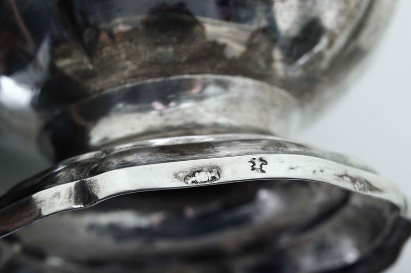 Rara caffettiera in argento fuso, sbalzato e cesellato. Mantova ultimo quarto del XVIII secolo, argentiere Giovanni Bellavite (1770-1798)