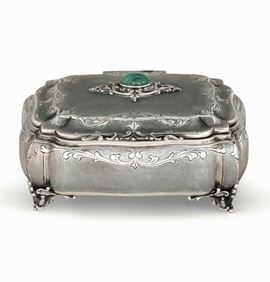 Decoro di gusto settecentesco con cabochon in malachite sul coperchio
