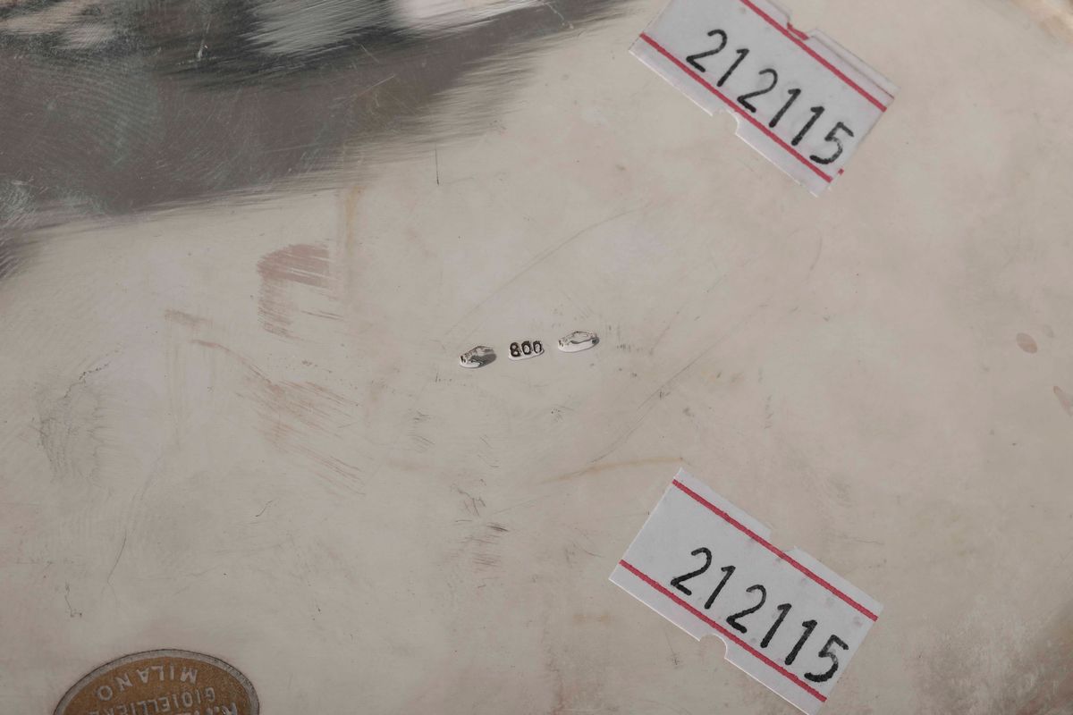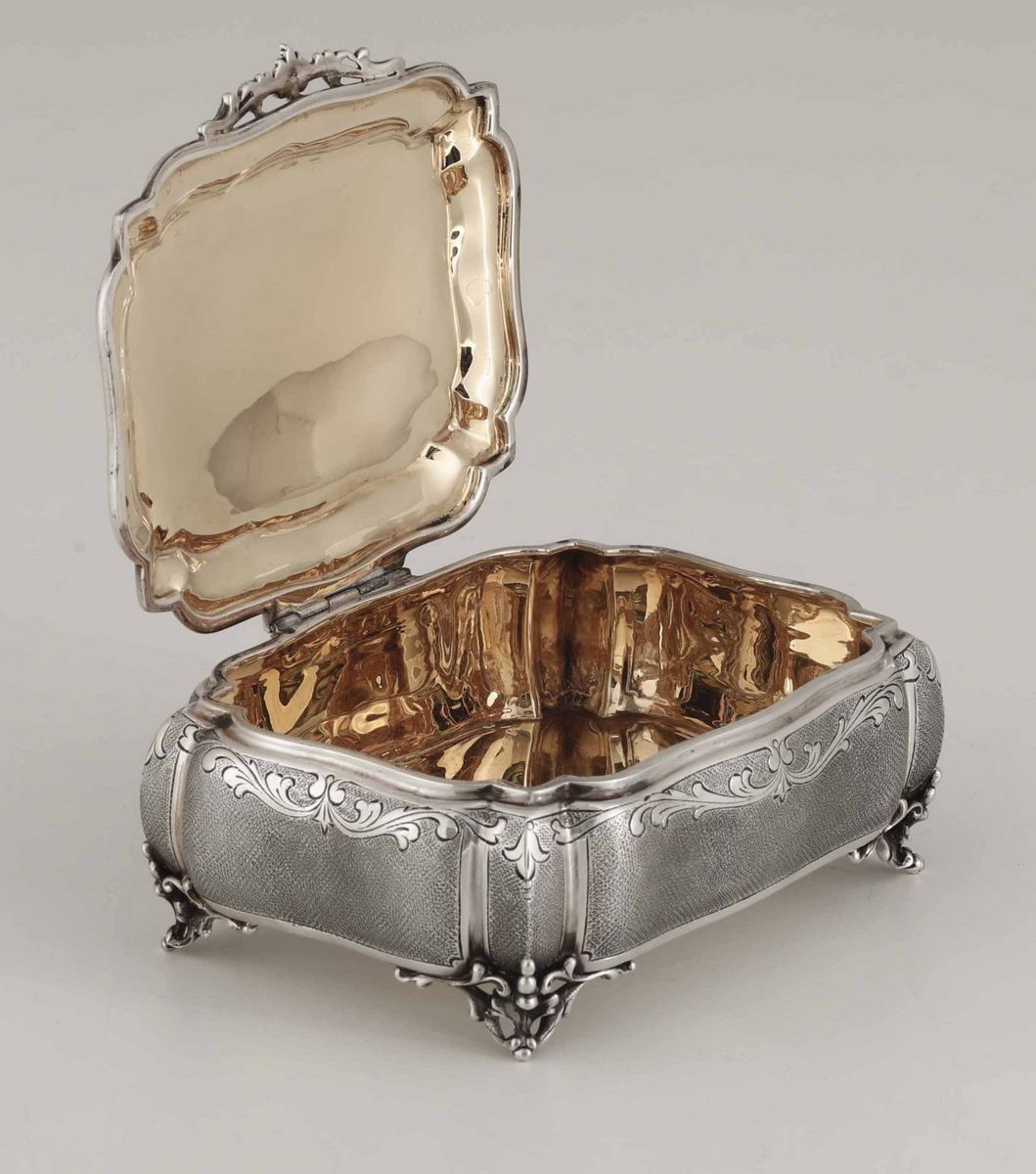 Scrigno porta gioie in argento fuso e cesellato, argenteria artistica Italiana. Marchio con fascio littorio in uso dal 1935 [..]