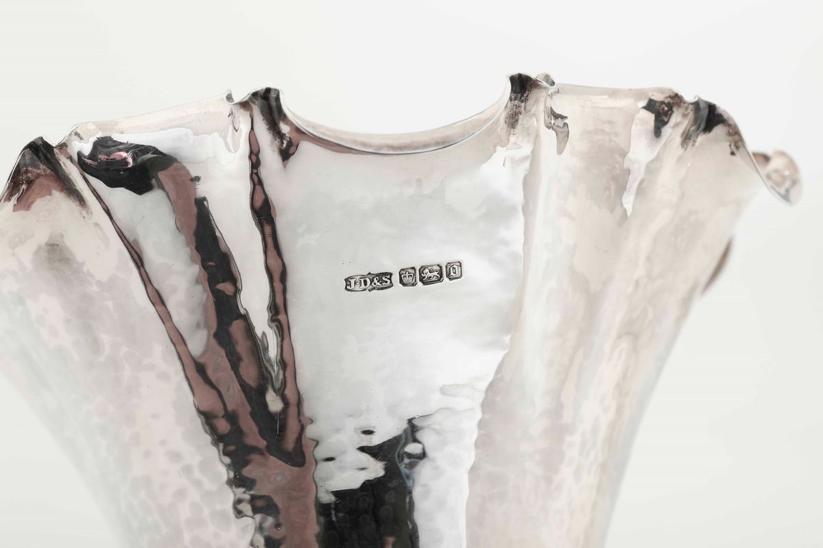Vaso Art Nouveau con tre manici eseguito in argento sterling 925 da James Dixon and Sons Sheffield 1906