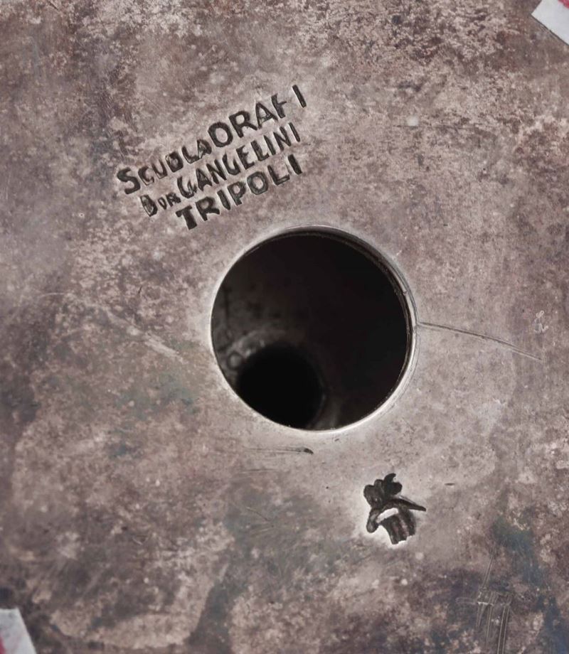Vaso in argento fuso, sbalzato e cesellato. Colonie italiane, Tripoli secondo quarto del XX secolo. Manifattura in stile arabeggiante eseguita nella scuola Orafi e Argentieri creata da Italo Balbo nel 1935 e diretta dal 1937 dal prof. Guido Angelini