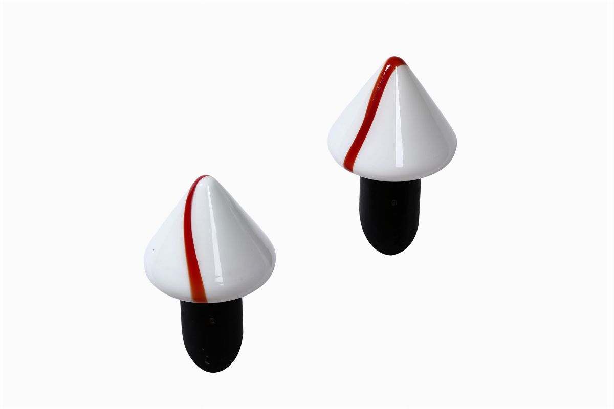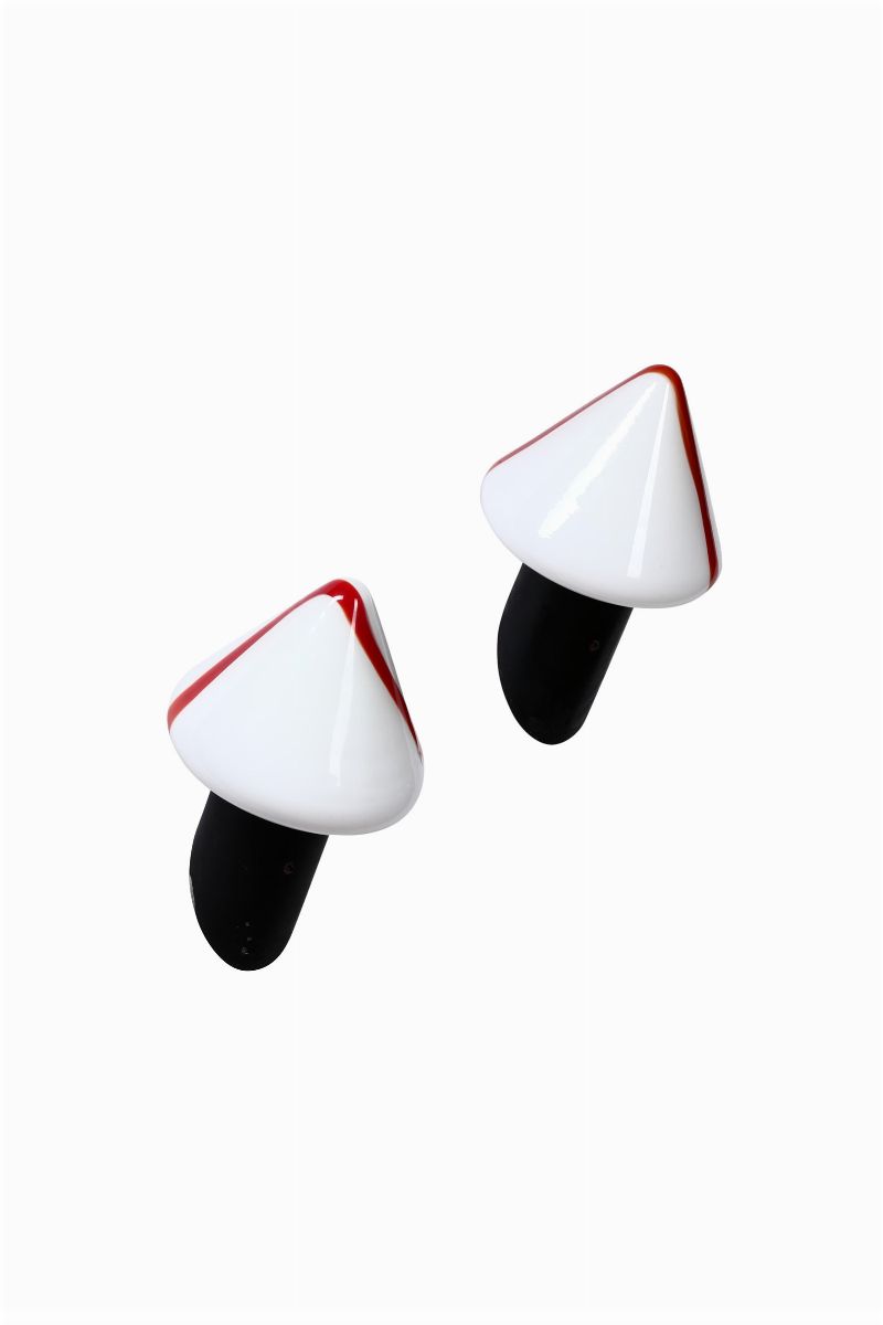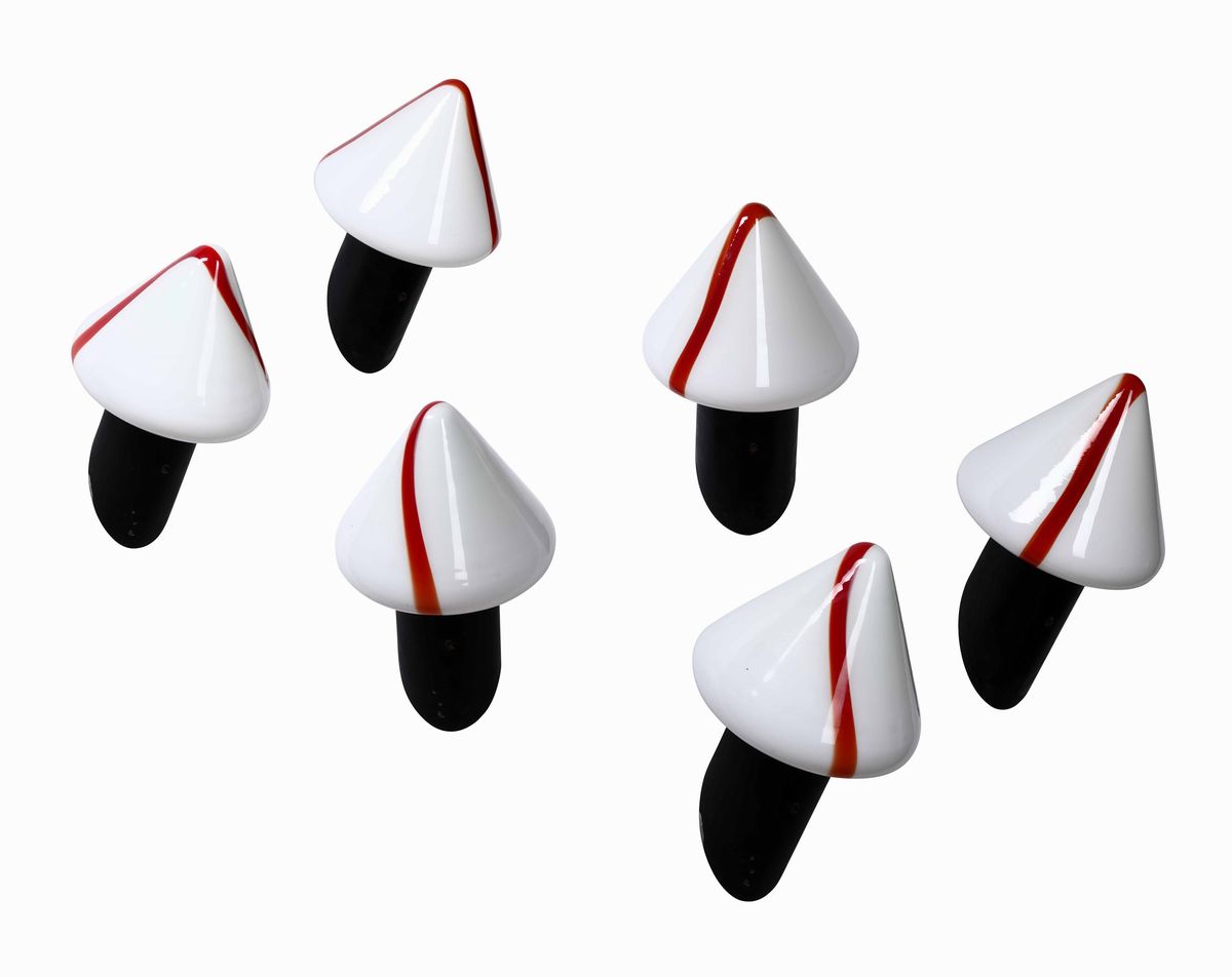 Sei lampade da parete con struttura in metallo e diffusori in vetro di Murano.