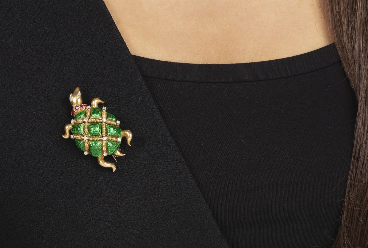 montature in oro giallo 750/1000. La tartaruga è punzonata Lunati