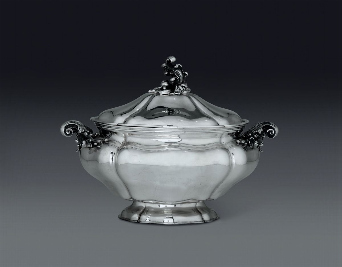 Grande zuppiera in argento con coperchio. Argenteria artistica milanese del XX secolo. Argentiere Zanetti e Pellegrini per [..]