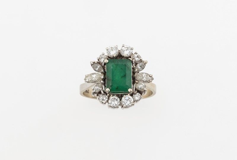 Anello con smeraldo e diamanti a contorno