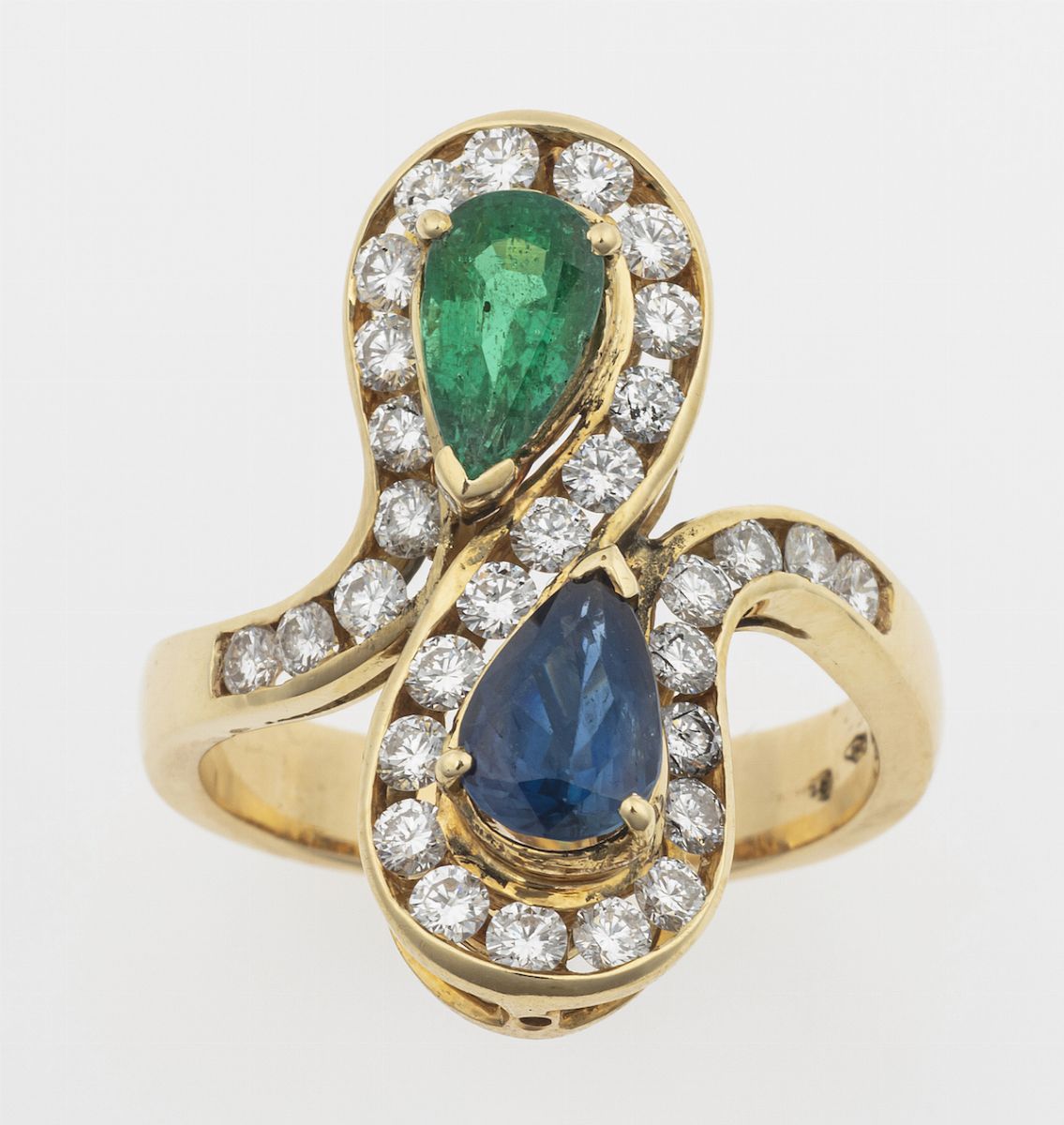 Anello con zaffiro e smeraldo taglio a goccia