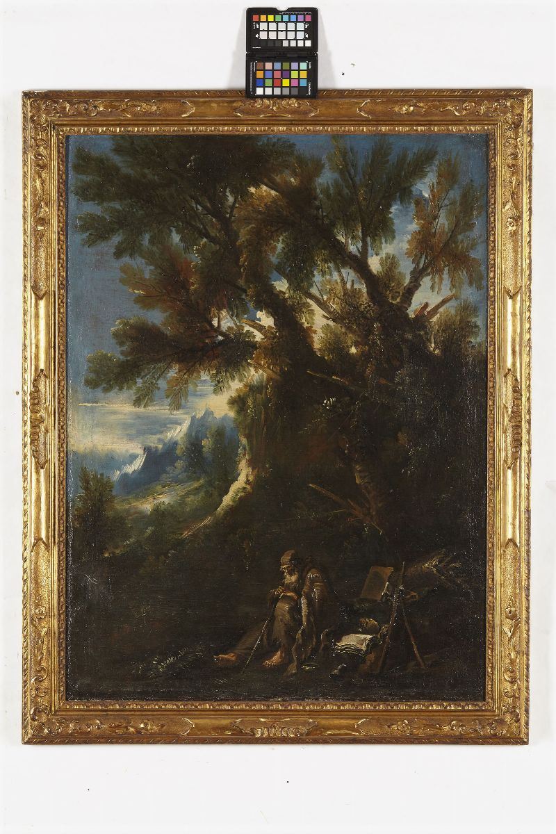 Alessandro Magnasco (Genova 1667-1749) e Antonio Peruzzini (Ancona 1643 - Milano 1724) Paesaggio con frate