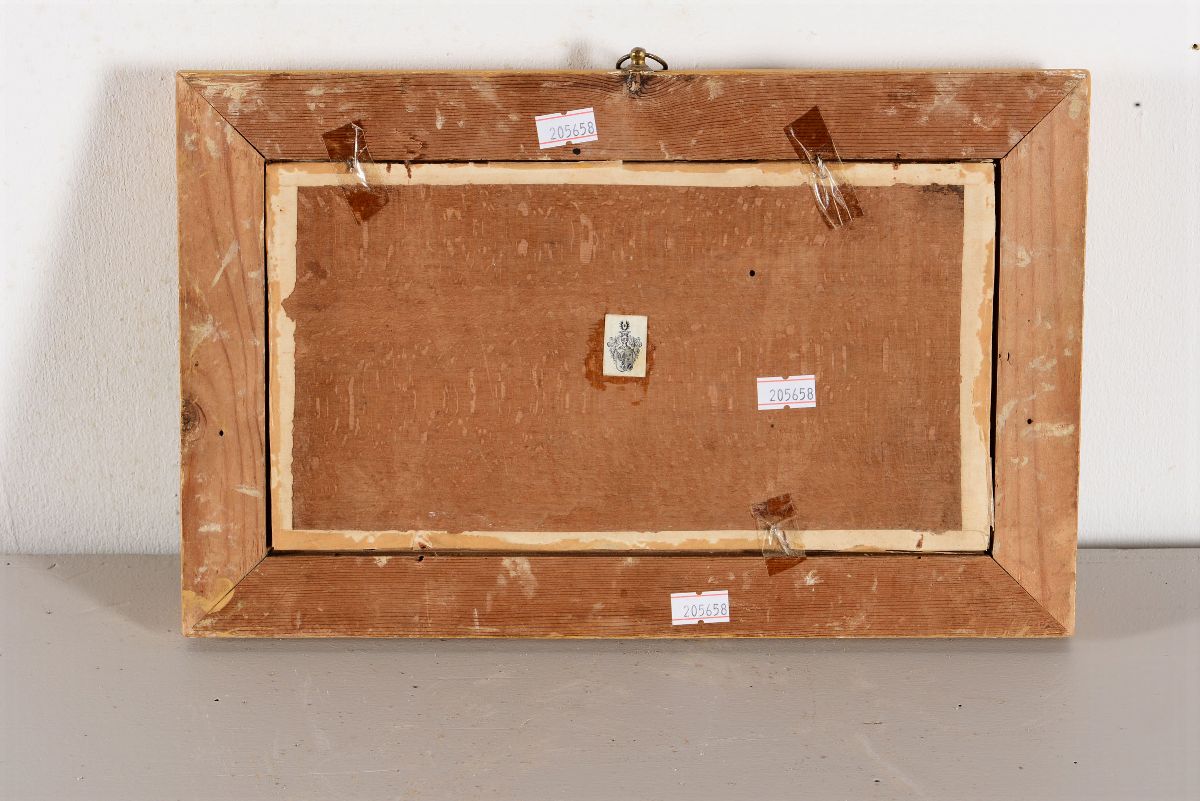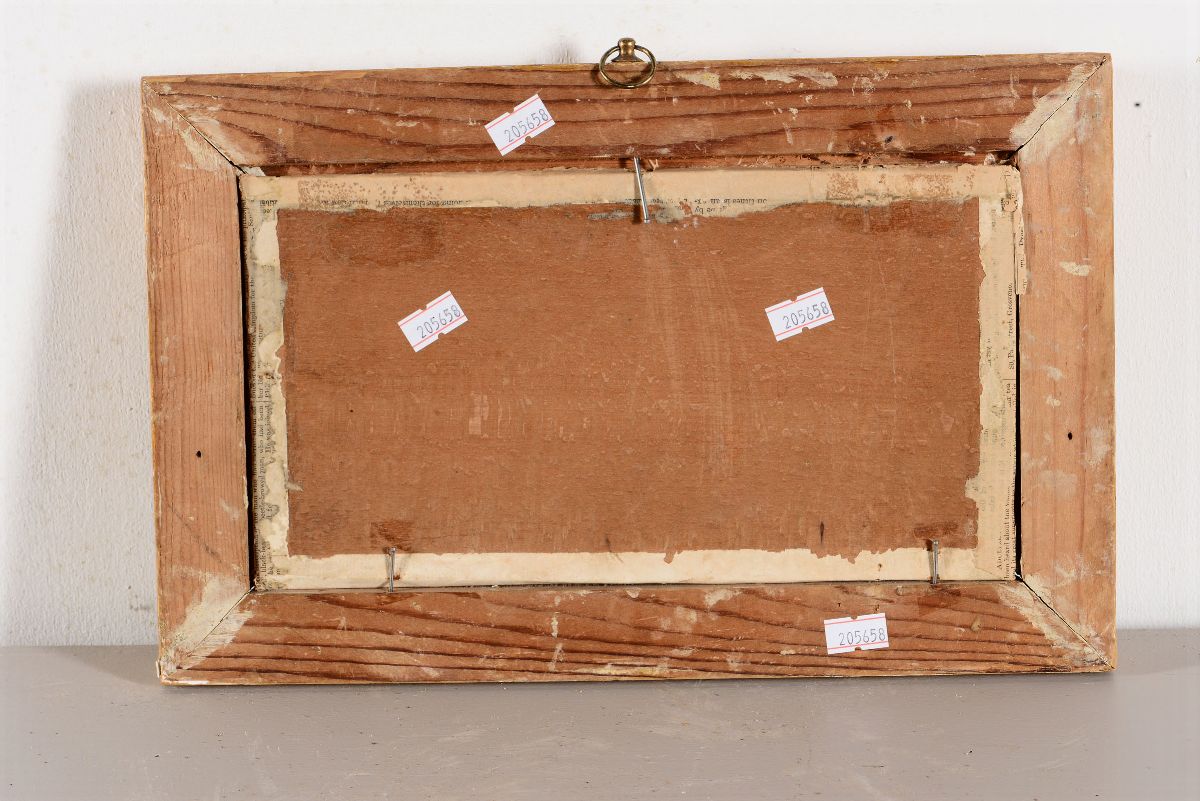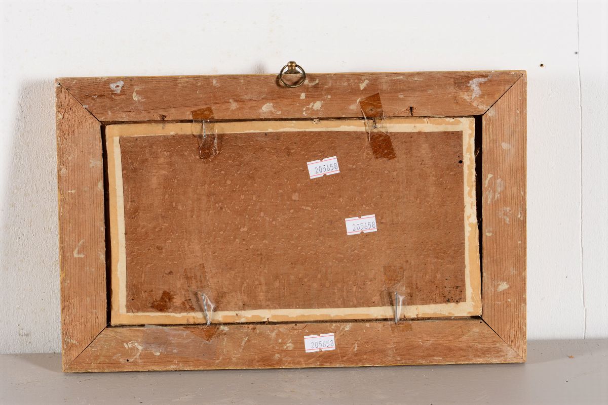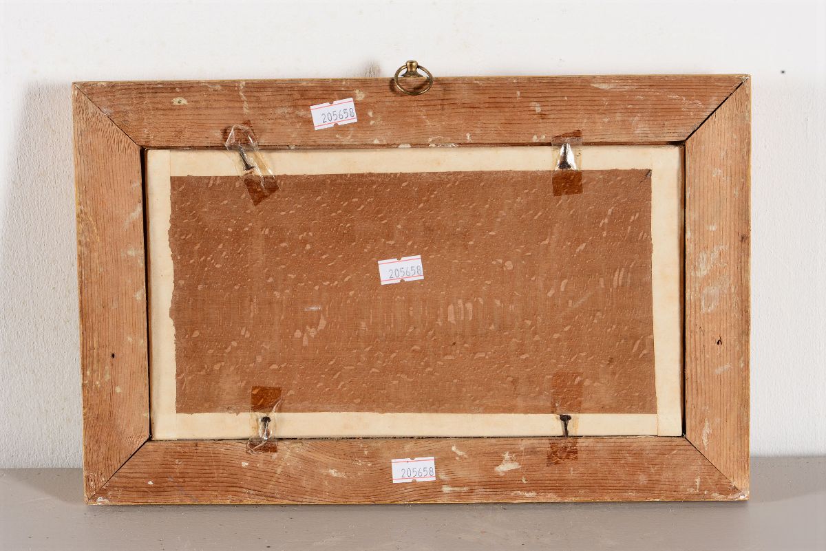 quattro dipinti a tempera su carta applicata su tavoletta, cm 14x26