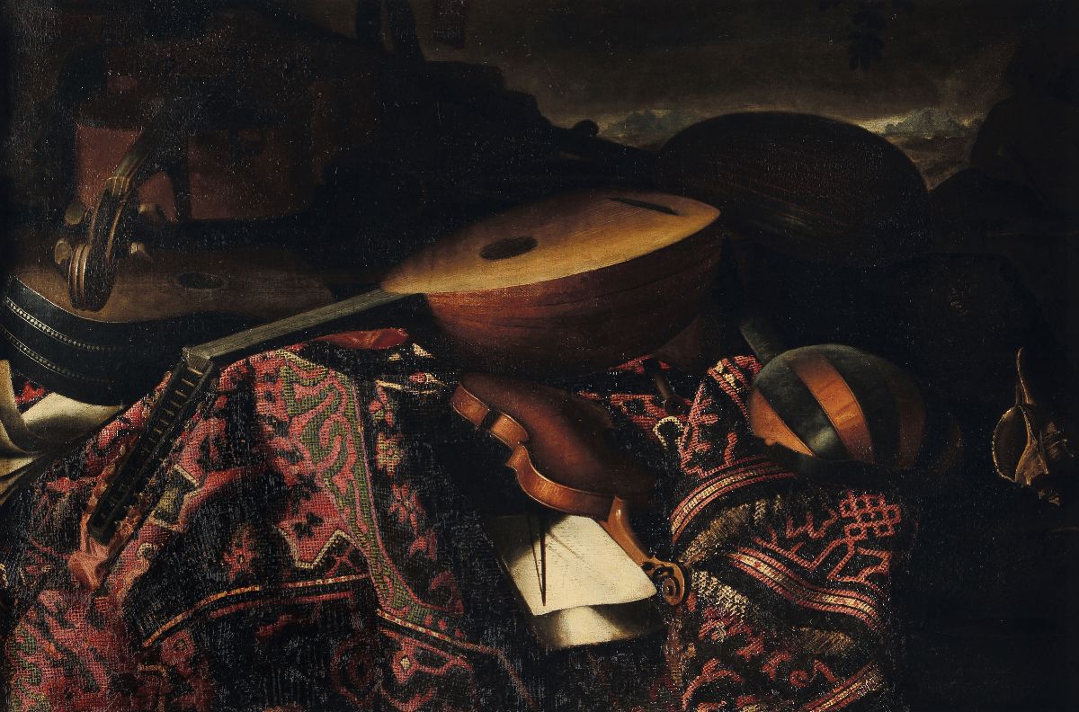 Bartolomeo Bettera (Bergamo 1639 - Milano 1668), attribuito a Natura morta con strumenti musicali e tappeto