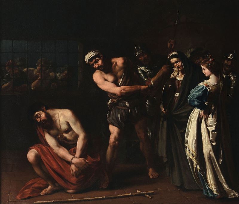 "Questo interessante dipinto mette in scena il martirio del santo attraverso un modulo compositivo e stilistico di chiara derivazione caravaggesca. La concezione compositiva dell'opera in esame rimanda infatti alla Decollazione del Battista che Caravaggio realizzò nel 1608 per il nuovo oratorio dedicato al santo dei Cavalieri di Malta, nella quale si ritrova lo stesso particolare dei prigionieri che assistono alla scena da dietro le sbarre.