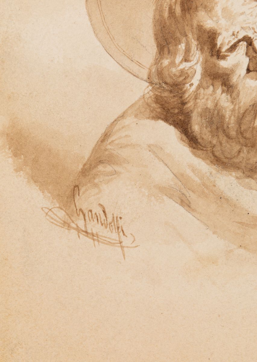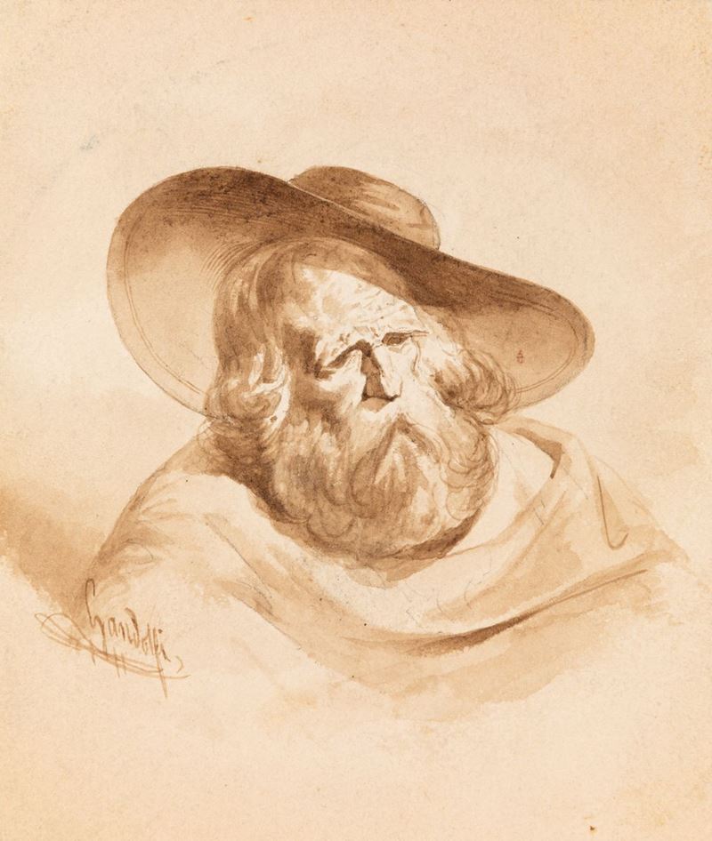Mauro Gandolfi (Bologna 1764-1834) Testa d'uomo barbuto con grande copricapo