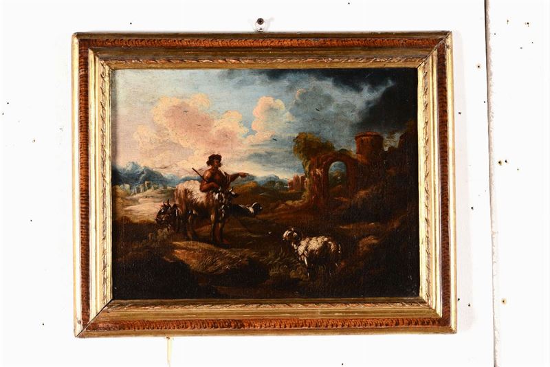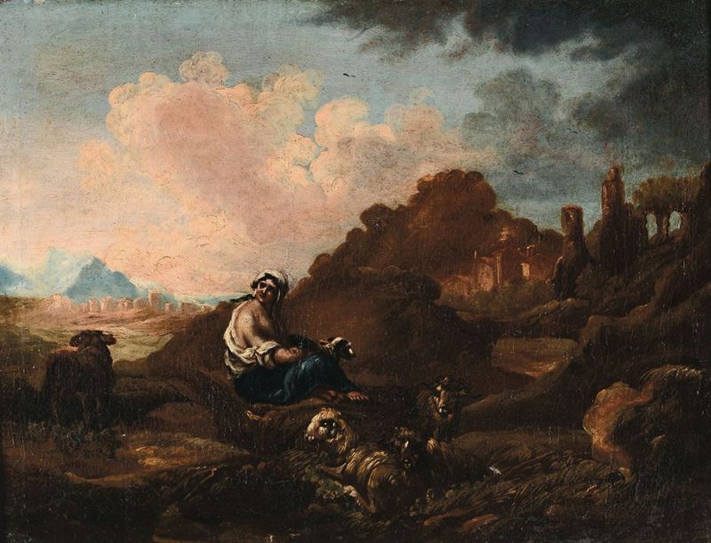 Philipp Peter Roos detto Rosa da Tivoli (Francoforte sul Meno 1655 - Tivoli 1706), cerchia di Scene pastorali