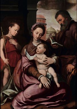 Santi Di Tito (Borgo San Sepolcro 1536 - Firenze 1603) Madonna con Bambino, San Giovannino e San Paolo