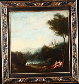 Scuola emiliana del XVII-XVIII secolo Scena campestre con coppia di amanti