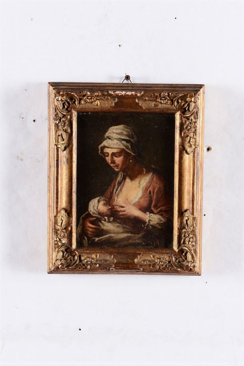 Scuola italiana del XVIII secolo Madre con bambino Figura di anziano