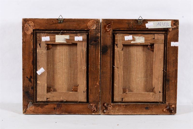 coppia di dipinti ad olio su tela, cm 19,5x14,5