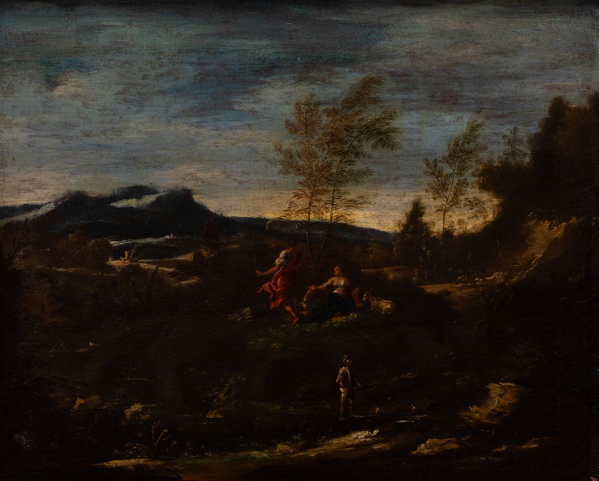 Scuola veneta del XVIII secolo Figure entro paesaggio